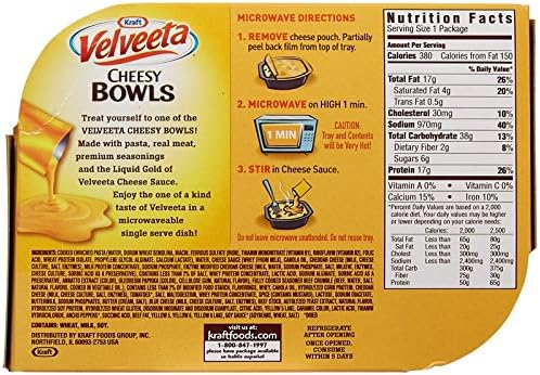 There are 380 calories in 1 package of kraft velveeta cheesy bowls ultimate cheeseburger mac. Velveeta recall issued over mislabled products. Pasta noodle dishes velveeta cheesy bowls, ultimate cheeseburger mac 9 oz (pack. Velveeta original shells & cheese, 5 oz.