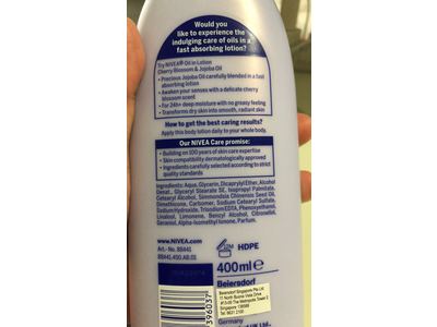Amazon Com Nivea Oil Infused Body Lotion Cherry Blossom Jojoba Oil Net Wt 16 9 Fl Oz 500 Ml Per Bottle Pack Of 3 Bottles Beauty from m.media-amazon.com With the goodness of cherry blossoms and jojoba oil, it makes your skin healthy from inside. Developed with the experience of over 100 years of skin care, nivea has combined precious natural ingredients with nourishing oils in a lotion: • awaken your senses with a delicate cherry blossom scent.