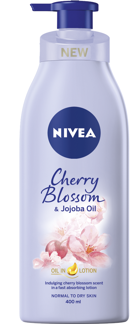View Nivea Oil In Lotion Cherry Blossom & Jojoba Oil Images. Awaken your senses with a delicate cherry blossom scent. Precious jojoba oil carefully blended in a fast absorbing lotion.